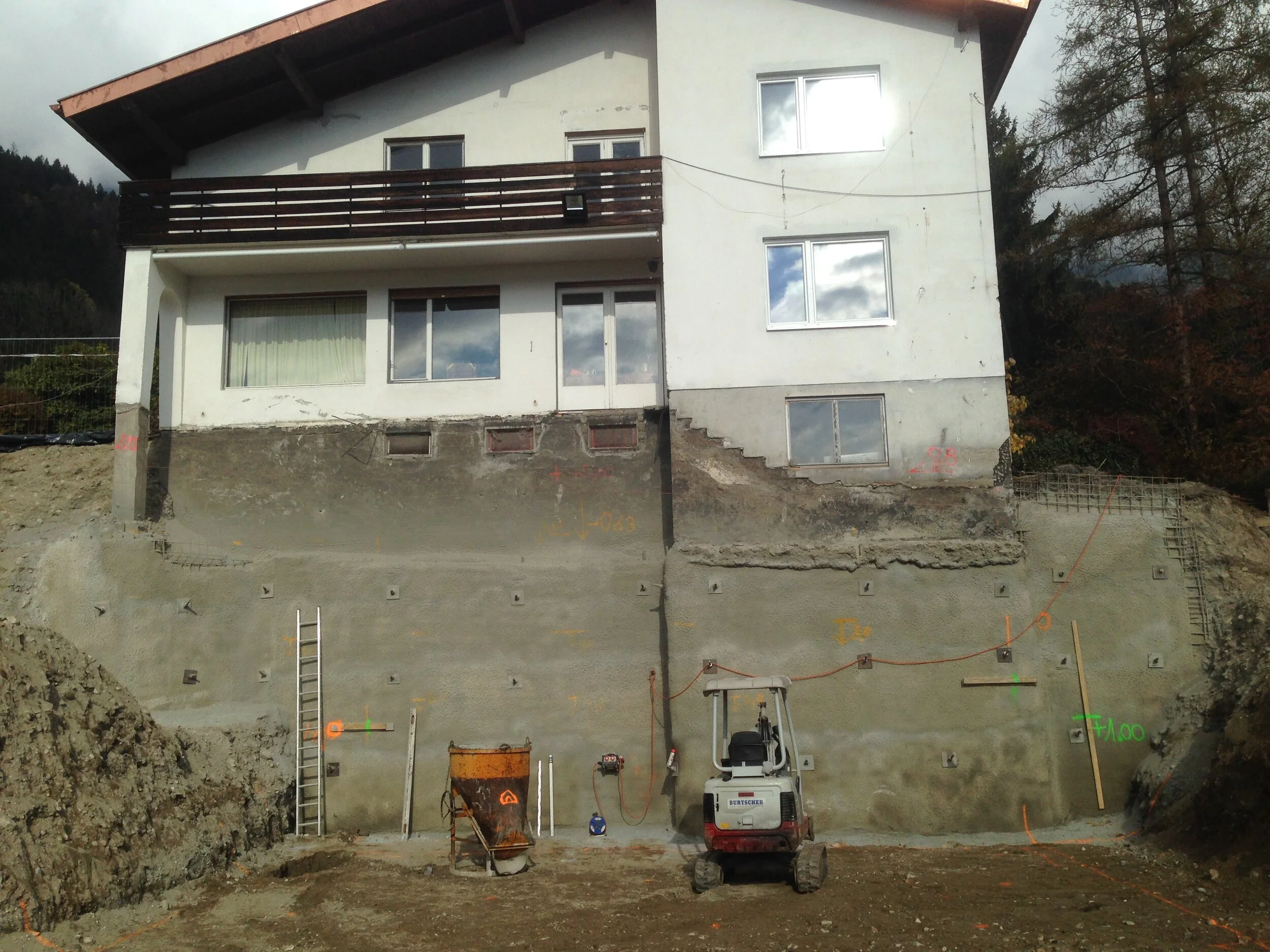 Sichern von Bestandsgebäuden mit Spritzbeton und Injektionsbohrankern.